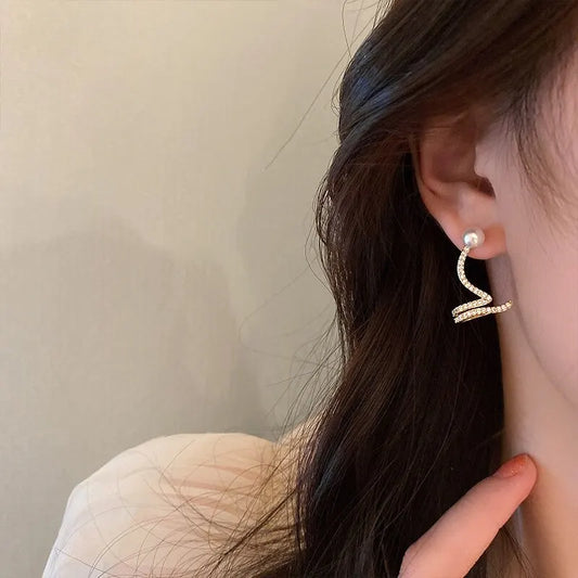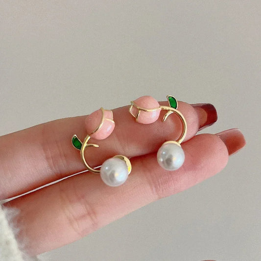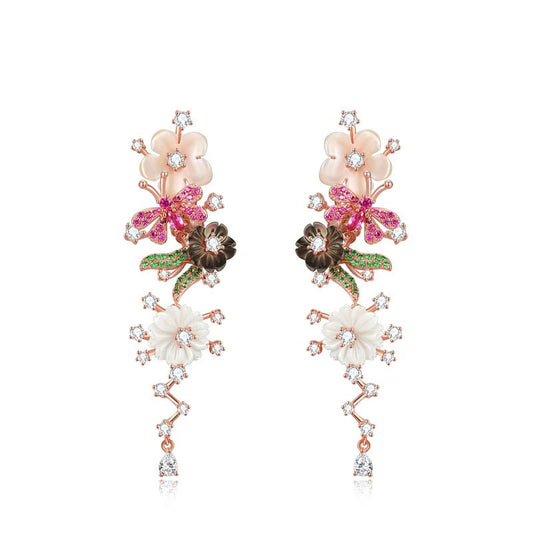 Black Pink Shell Flower White Zircon 925 Sterling Silver Earring
