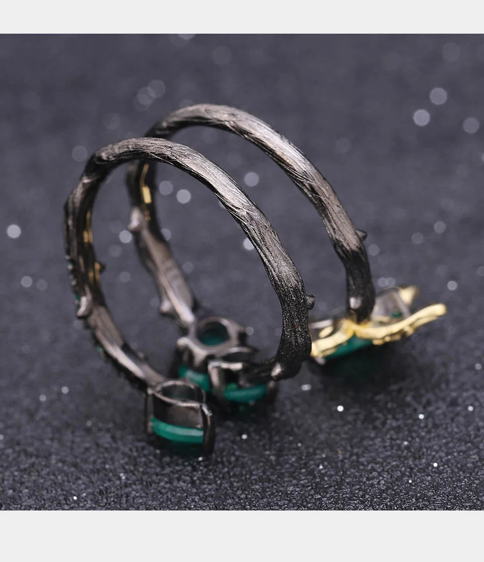 The Green Agate Butterfly Ring features a captivating butterfly design, symbolizing transformation and grace. This unique pattern adds a touch of elegance to any ensemble.